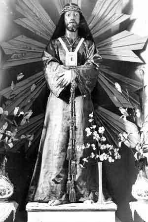 Pero no es hasta 1946, cuando un grupo de personas decididas y emprendedoras, entre las que se encontraba nuestro primer Hermano Mayor, Don Eduardo Carbonell, constituyen la Hermandad de manera oficial. De ello queda cumplida constancia en el Acta de Constitución. La Talla, de autor anónimo y datada entorno al siglo XVII, representa a Nuestro Padre Jesús en posición esclava. Entre las visicitudes que le tocó sufrir, es de resaltar que durante los años de la contienda civil española, la Imagen del Divino Cautivo, fue tabicada en su hornacina, poco antes del asalto, y por manos piadosas en la Iglesia de San Juan Bautista, la cual fue convertida en prisión. Si bien es difícil de comprender tan drástica actuación, fue ésta, la que salvó a la imagen de sufrir cualquier daño durante bastante tiempo, aunque finalmente sufrió mofa y escarnio como otras muchas Imágenes, siendo restaurada por el escultor Sánchez Lozano.